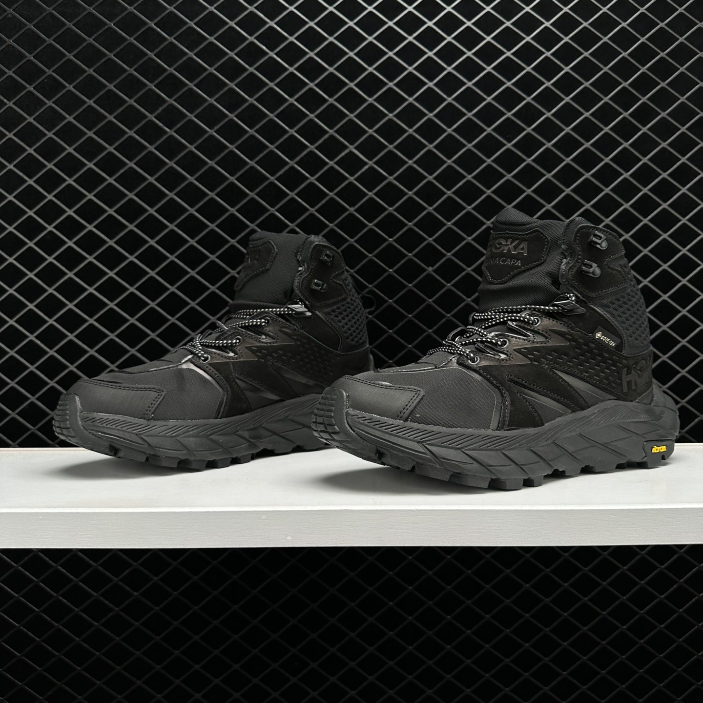 Whether you’re conquering mountain peaks or exploring local trails, the Hoka One One Anacapa Mid Gore Tex ‘Black’ 1122018-BBLC is designed to support and protect your feet throughout your outdoor adventures. Experience unparalleled comfort, traction, and reliability with these premium hiking shoes.