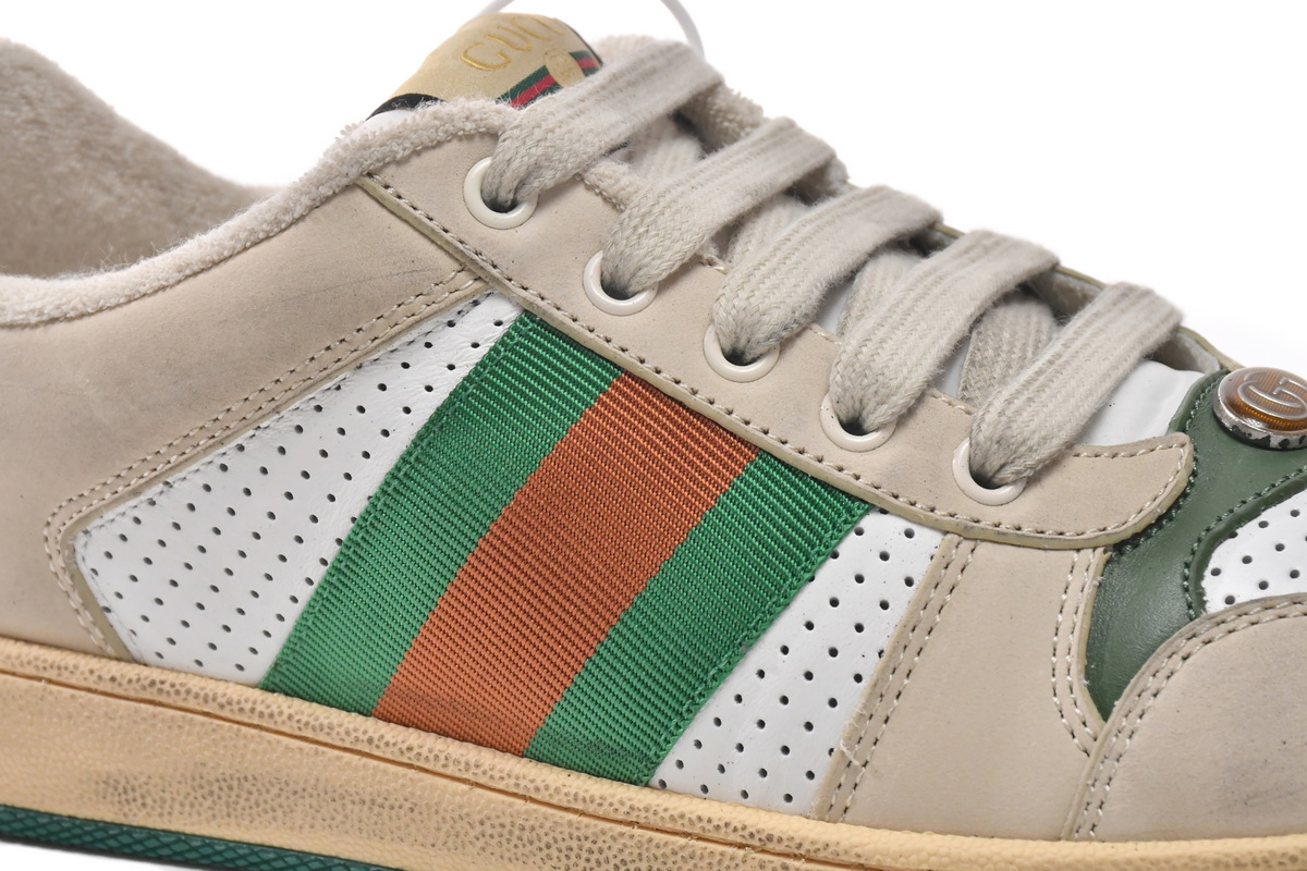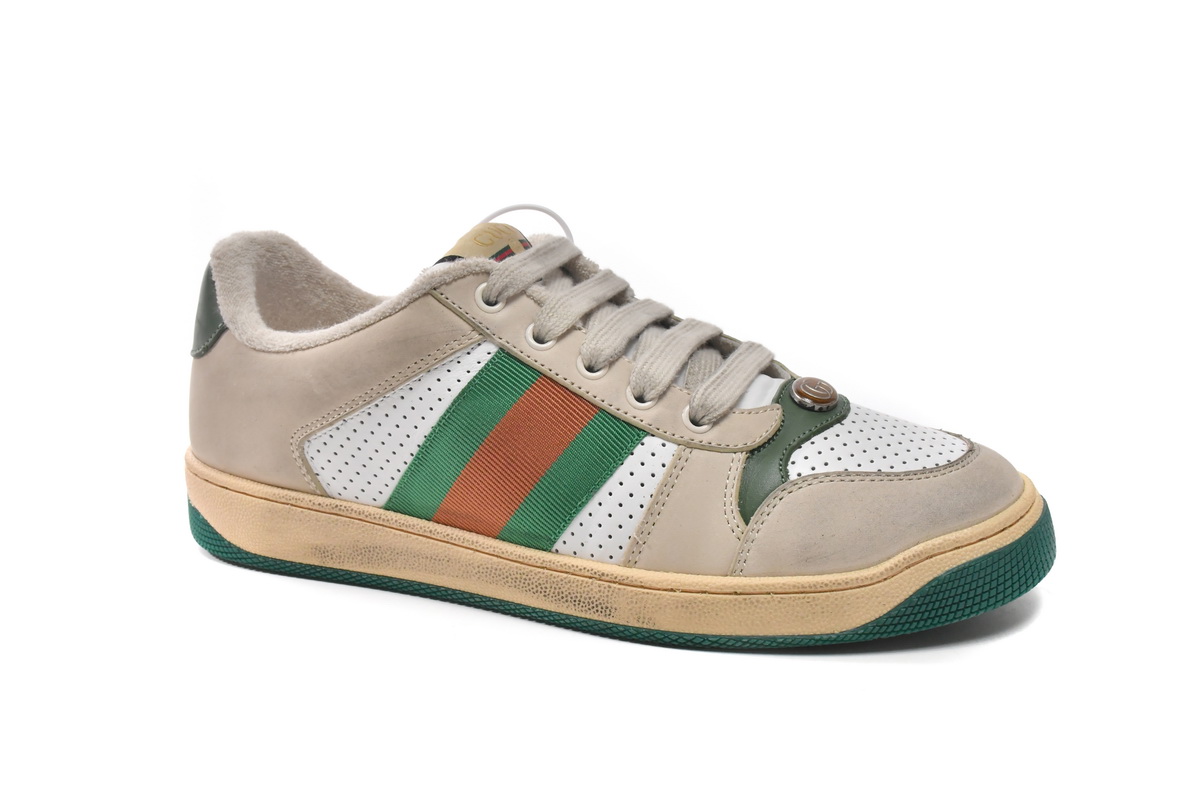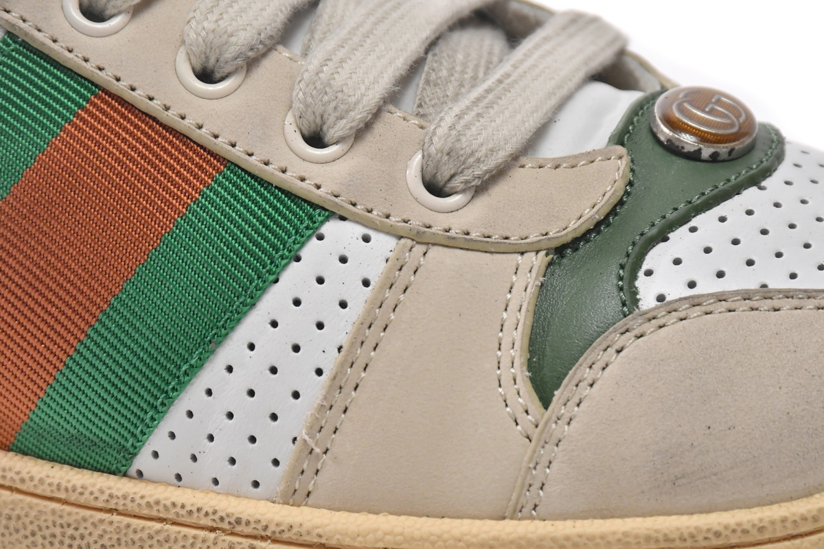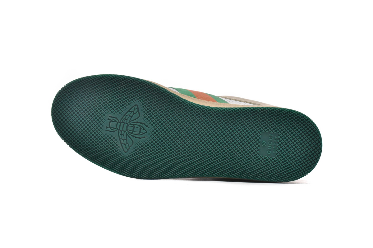 In conclusion, the Gucci Screener Distressed ‘Green Orange’ sneaker is a must-have item for fashion enthusiasts who appreciate the fusion of vintage-inspired design and contemporary fashion. With its unique distressed look, iconic Gucci logo, and high-quality materials, this shoe is sure to turn heads and elevate any outfit. Get ready to embrace the perfect blend of street style and luxury with these Gucci sneakers.